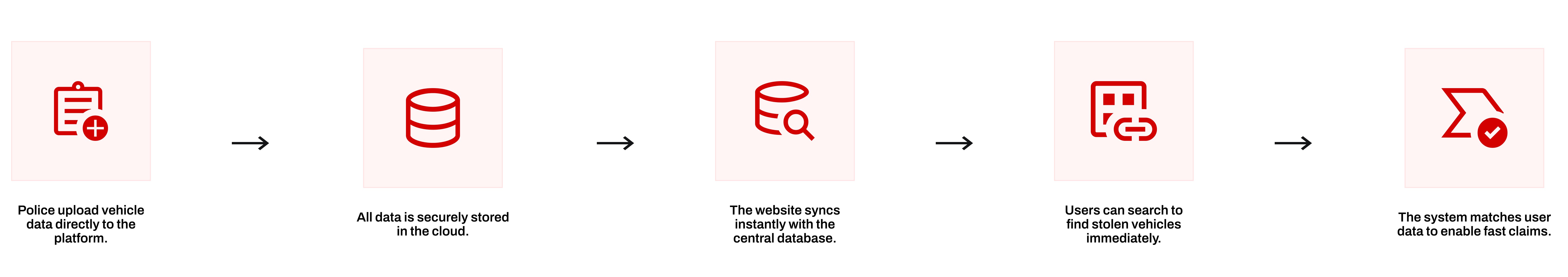 Develop a web platform to centralize stolen vehicle data, allowing owners to search, verify, and claim recovered vehicles efficiently.